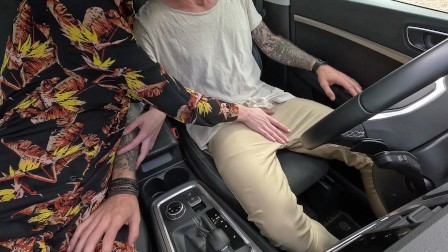 Outdoor HandJob with Cumshot in Car At Busy Park !