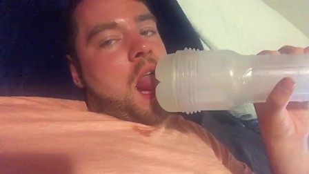 Licking my Grindr hookup's CUM out of my Fleshlight as it DRIPS ON MY BEARD