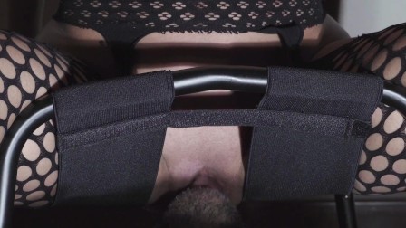 I use the chair to enjoy on his face. Want his tongue in my pussy