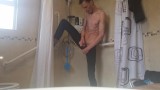 Very skinny teen strips down and shows off his body and trys to self fuck