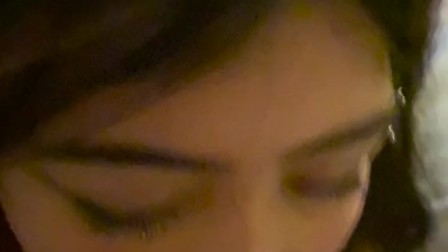 Eyeliner and Eyebrow Piercing Gf Gets Tongue Full of Cum!