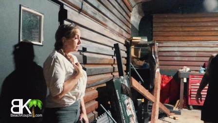 The Nosey Neighbor gets tied up, gags on cock and gets DOUBLE STUFFED in dungeon!